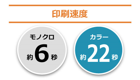 1枚あたりの印刷時間がモノクロ片面印刷の場合わずか約6秒、カラー片面印刷の場合でも約22秒とスピード印刷で、お客様を待たせません。