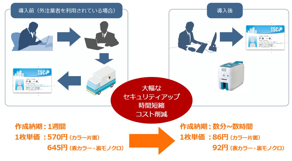 カード作成を外部の業者に委託する場合、コストが高い、納期まで時間がかかる、個人情報漏洩の心配など様々なデメリットが生じます。