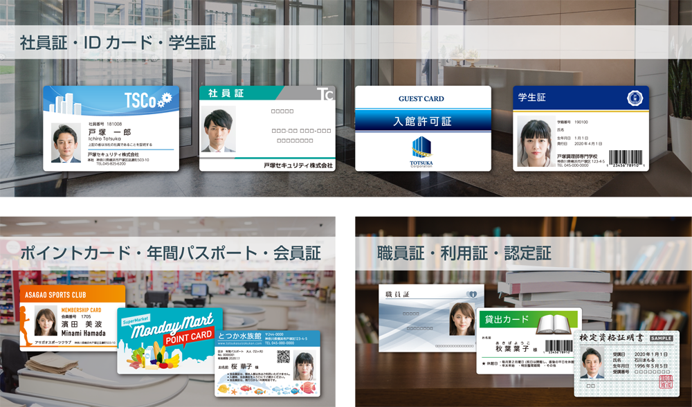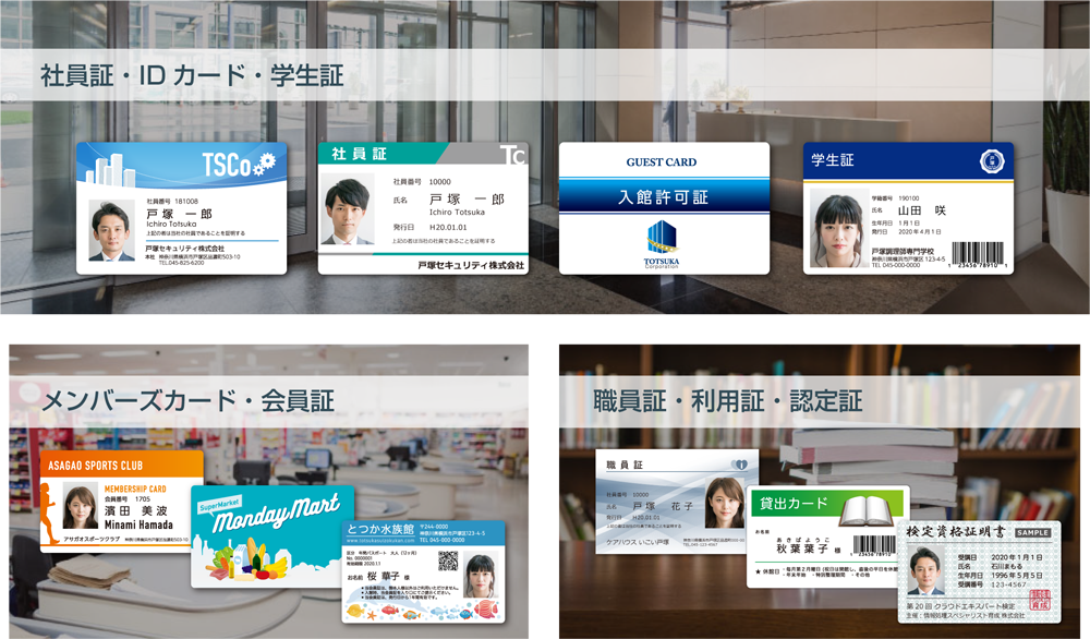 病院での診察券や各種会員カード及び社員証・IDカードなど様々な用途に対応することができます。