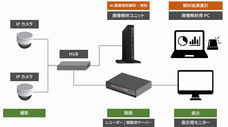 各拠点の画像解析ユニットデータを統合し、集計することも可能 ※ネットワーク接続が必要
