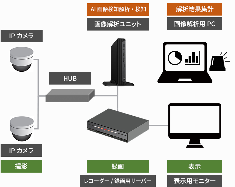 AIカメラやAI画像解析ユニットによって検知内容が異なります。