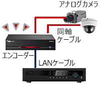 エンコーダーに接続することで、アナログカメラも接続可能です。