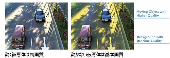 インテリジェントコーデック機能では、動かない被写体部分の画質を調整する機能があり、データ容量を抑えることができます。