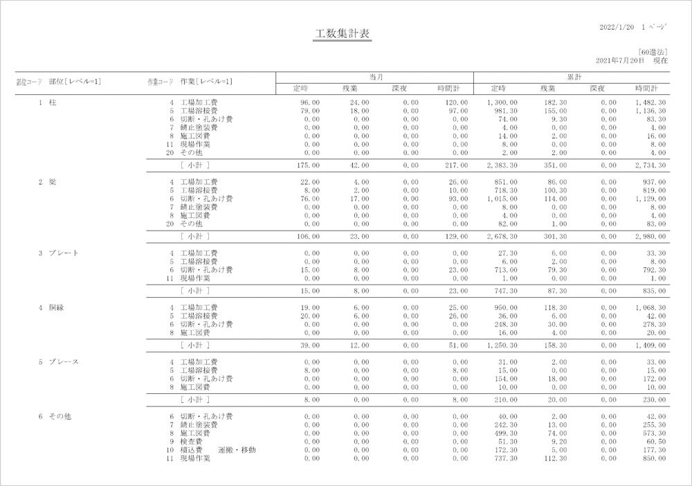 ・作業別(作業集計表)