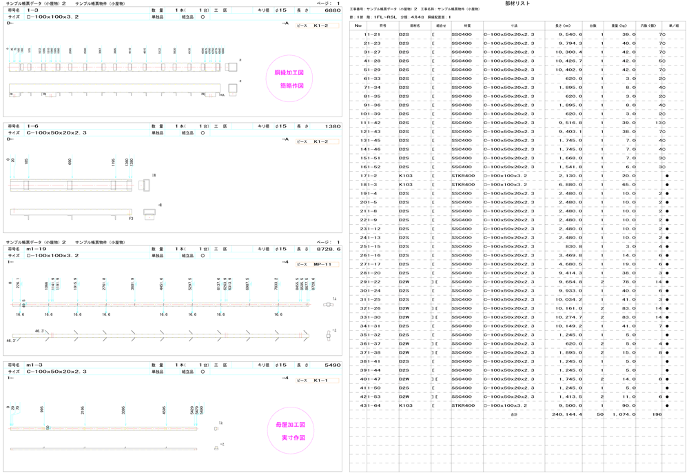 - 作図(一般図、詳細図、加工図、帳表、型紙 等)