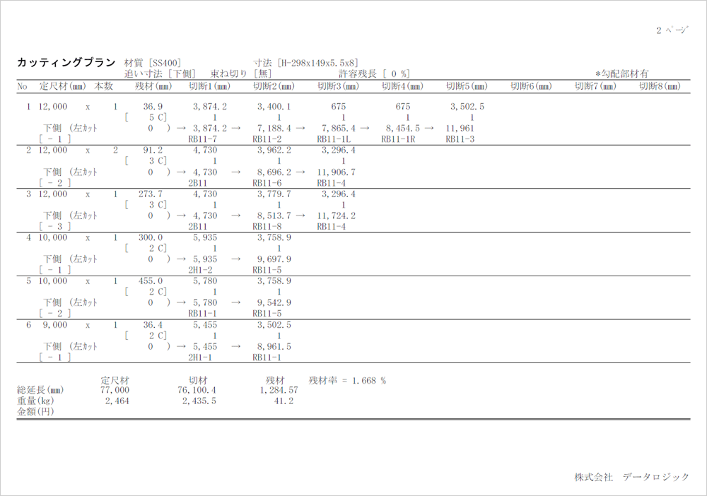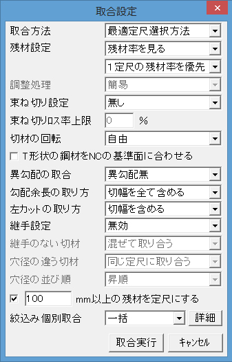 歩留まり率の高い取合を自動で行います。