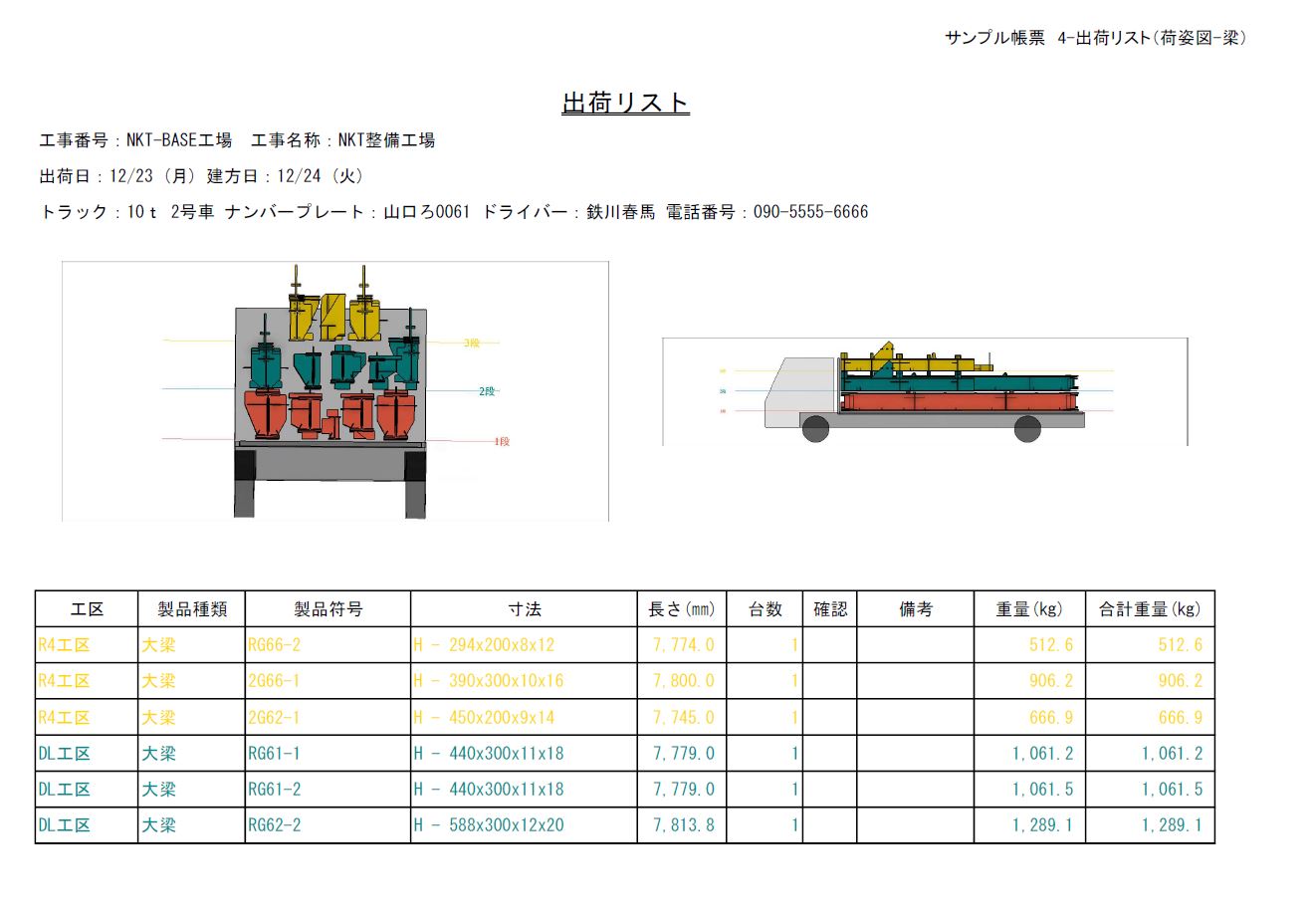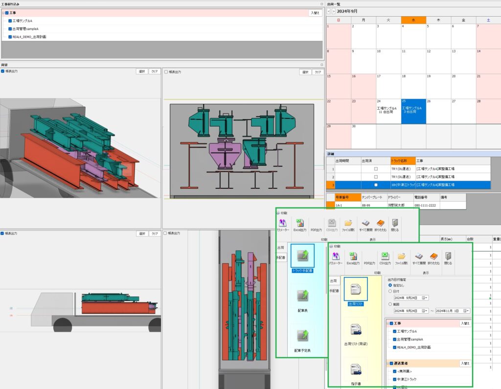 REAL4のデータをもとに、建て方現場に搬送する鉄骨の管理や出荷表など必要な帳票の作成、トラックの積み込みシミュレーションまでをまとめて行う管理ソフトです。