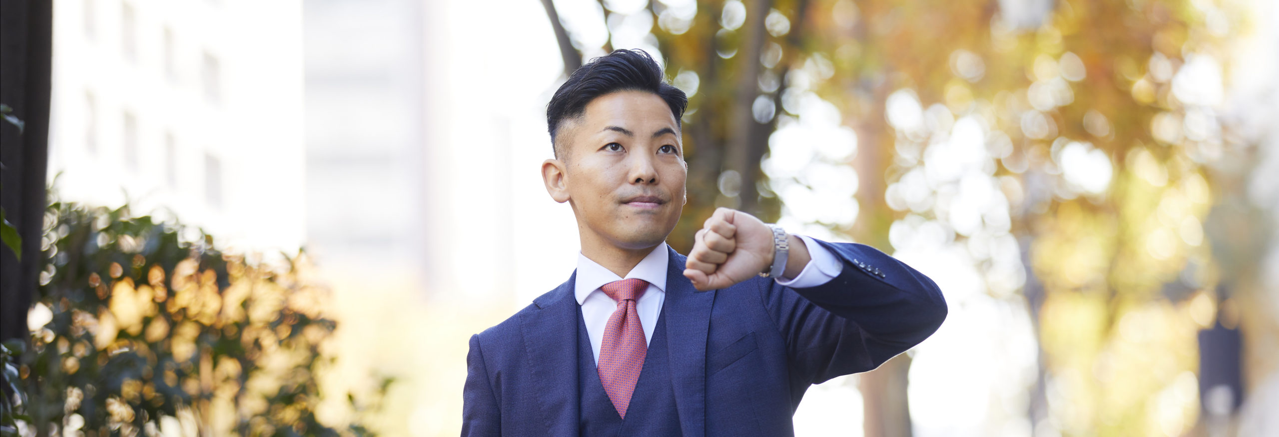 支店全体の朝礼の後、グループ朝礼。 後輩の本日の行動目標とスケジュールを確認し、気になる点をアドバイスします。 その後メールチェックを行います。